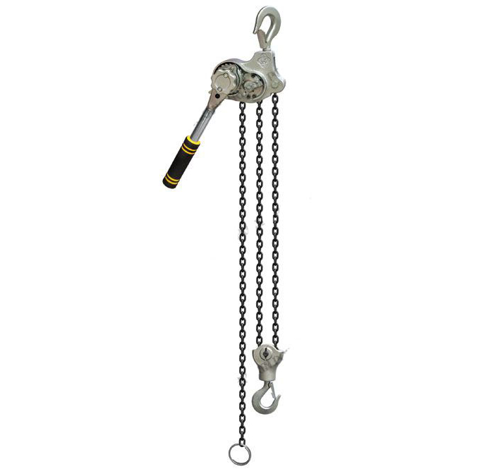 特点: 主体采用高强度镁铝合金材料,链条采用高强度特制合金钢材料。使用方便、安全可靠;结构合理、造型美观;维修简单、经久耐用;手扳力小、工作效率高;体积特小、重量特轻、携带方便。