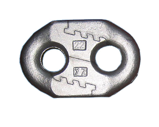 矿用圆环链之间相连接用。使用时即可水平安装,又能垂直安装。锯齿连接环适用于矿用高强度圆环链之间连接的链环,锯齿式接链环既可以水平安装又能垂直安装.此产品齿形设计独特,齿形配合精确,拆装方便.