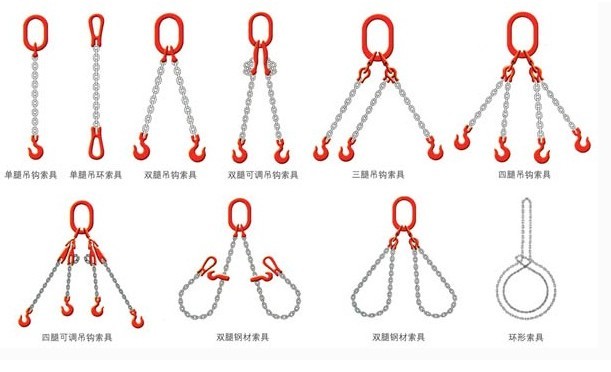 专业定制起重链条吊具、链条吊索具 单肢 二肢 三肢四肢 等等链条索具 本公司有着优等的链条实验拉力机 保证每根链条索具严格出厂。 链条索具由链条、强力环、蝴蝶扣、羊角勾 组成.