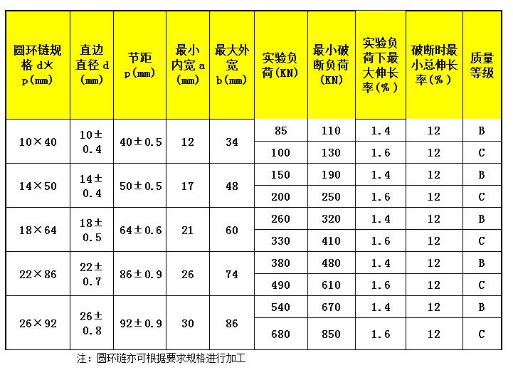 5)三环链械性能参数
