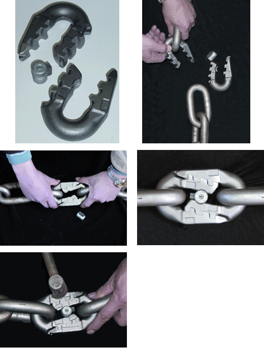 1、将接链环两半部分分别挂在链环上